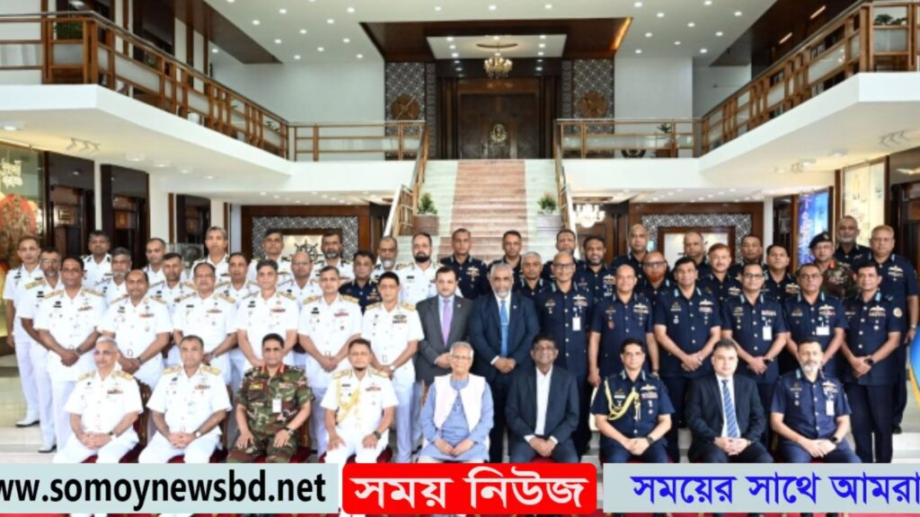 নিজস্ব প্রতিবেদকঃগণপ্রজাতন্ত্রী বাংলাদেশের অন্তর্বর্তীকালীন সরকারের মাননীয় প্রধান উপদেষ্টা ড. মুহাম্মদ ইউনূস আজ রবিবার (০৩-০৮-২০২৫) নৌবাহিনী সদর দপ্তরে ‘নৌবাহিনী ও বিমান বাহিনী নির্বাচনী পর্ষদ-২০২৫’ এর আনুষ্ঠানিক উদ্বোধন করেন। নৌবাহিনী সদর দপ্তরে আয়োজিত এ অনুষ্ঠানের মাধ্যমে নৌবাহিনীর ক্যাপ্টেন হতে কমডোর, কমান্ডার হতে ক্যাপ্টেন ও লেঃ কমান্ডার হতে কমান্ডার এবং বিমান বাহিনীর গ্রুপ ক্যাপ্টেন হতে এয়ার কমডোর, উইং কমান্ডার হতে গ্রুপ ক্যাপ্টেন এবং স্কোয়াড্রন লিডার হতে উইং কমান্ডার পদবিতে কর্মকর্তাদের পদোন্নতির আনুষ্ঠানিক কার্যক্রম শুরু হয়। সর্বোচ্চ নীতি-নির্ধারণী পর্যায়ের সামরিক কর্মকর্তাবৃন্দের সমন্বয়ে গঠিত এ পর্ষদ, সরকারের অনুমোদন সাপেক্ষে নৌবাহিনী ও বিমান বাহিনীর ভবিষ্যৎ জ্যেষ্ঠ নেতৃত্বের জন্য যোগ্য ও দক্ষ কর্মকর্তা নির্বাচন করবেন। অনুষ্ঠানের শুরুতেই মাইলস্টোন স্কুল এন্ড কলেজ এ সংঘটিত মর্মান্তিক বিমান দুর্ঘটনায় নিহতদের স¥রণে ০১ মিনিট নীরবতা পালন করা হয়।