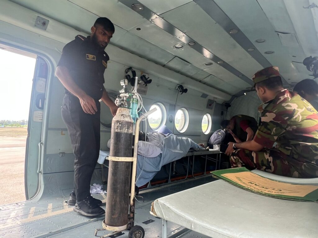 আহতদের উন্নত চিকিৎসার জন্য বর্ডার গার্ড বাংলাদেশ (বিজিবি) এর হেলিকপ্টারযোগে রামু ক্যান্টনমেন্ট থেকে ঢাকায় আনা হয়েছে।