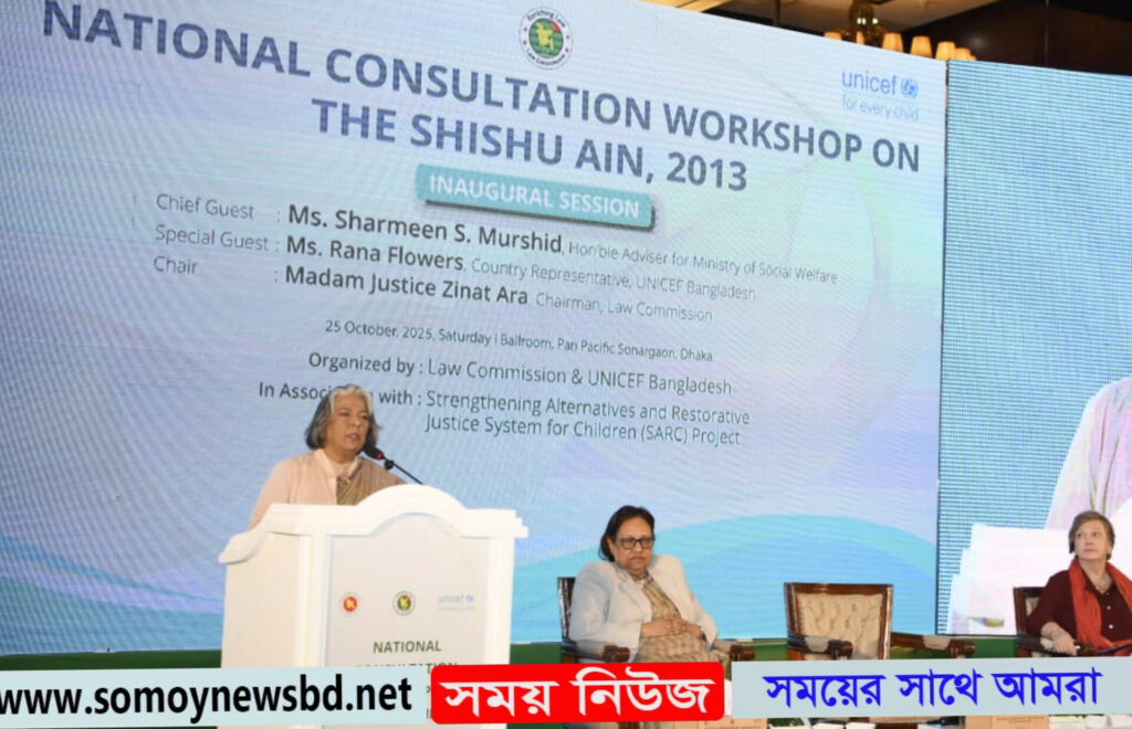 তিনি আজ ঢাকায় প্যান প্যাসিফিক সোনারগাঁয়ে আইন কমিশন ও ইউনিসেফ বাংলাদেশ কর্তৃক আয়োজিত শিশু আইন ২০১৩ : সংশয়, বিভ্রান্তি ও অসংগতি শীর্ষক জাতীয় মতবিনিময় ওয়ার্কশপে প্রধান অতিথির বক্তৃতায় এ কথা বলেন। শিশু আইন ২০১৩ সম্পর্কিত সংশয়, বিভ্রান্তি ও অসংগতি সমূহ চিহ্নিত পূর্বক তৎসম্পর্কে সুপারিশ প্রণয়নের লক্ষ্যে ওয়ার্কশপে আইন কমিশনের চেয়ারম্যান বিচারপতি জিনাত আরা, ইউনিসেফ বাংলাদেশের কান্ট্রি প্রেজেন্টেটিভ রানা ফ্লাওয়ারস বিশেষ অতিথির বক্তৃতা করেন। অনুষ্ঠানে সমাজকল্যাণ মন্ত্রণালয়, মহিলা ও শিশু বিষয়ক মন্ত্রণালয়, স্বরাষ্ট্র মন্ত্রণালয়, আইন বিচার ও সংসদ বিষয়ক মন্ত্রণালয়, জাতিসংঘের সংস্থা ইউনিসেফ, ইউএনডিপি, ইউএনওডিসি, আইএলও, আইওএম, নাগরিক সমাজের সেভ দ্য চিলড্রেন ইন্টারন্যাশনাল এবং ব্লাস্ট, শিশু অধিকার বিশেষজ্ঞ, বিচার বিভাগের সদস্য, আইন প্রয়োগকারী সংস্থা, প্রবেশন অফিসার এবং নাগরিক সমাজের সংগঠনগুলির প্রতিনিধি সহ গুরুত্বপূর্ণ অংশীদারদের অংশগ্রহণে আইনের মধ্যে থাকা সংশয়, বিভ্রান্তি ও অসংগতি সমূহ সম্পর্কে আলোচনা হয় এবং শিশু সুরক্ষা ব্যবস্থাকে শক্তিশালী করার এবং বিদ্যমান পদ্ধতিগুলিকে সহজ করার জন্য সুপারিশ গুলির প্রস্তাব করা হয়েছে।