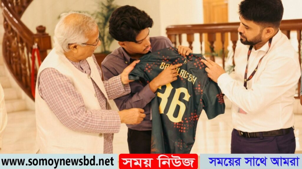 এসময় মেঘ তার নিজের ডিজাইন করা এরা একটি জার্সি ও ব‍্যাগ প্রধান উপদেষ্টাকে উপহার দেন।
