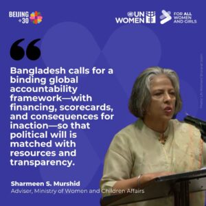 জাতিসংঘে অনুষ্ঠিত নারী সম্মেলনে বিশ্বব্যাপী বাধ্যতামূলক জবাবদিহিতাপূর্ণ ফোরাম গঠনের আহ্বান জানান_শারমীন এস মুরশিদ।