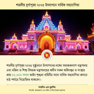 নিজস্ব প্রতিবেদকঃ শারদীয় দুর্গাপূজা ২০২৫ নির্বিঘ্নে সুষ্ঠুভাবে উদযাপনের লক্ষ্যে সমাজকল্যাণ এবং মহিলা ও শিশু বিষয়ক মন্ত্রণালয়ের অধীন সকল অধিদপ্তর ও সংস্থার প্রায় ৮০ হাজার সদস্য